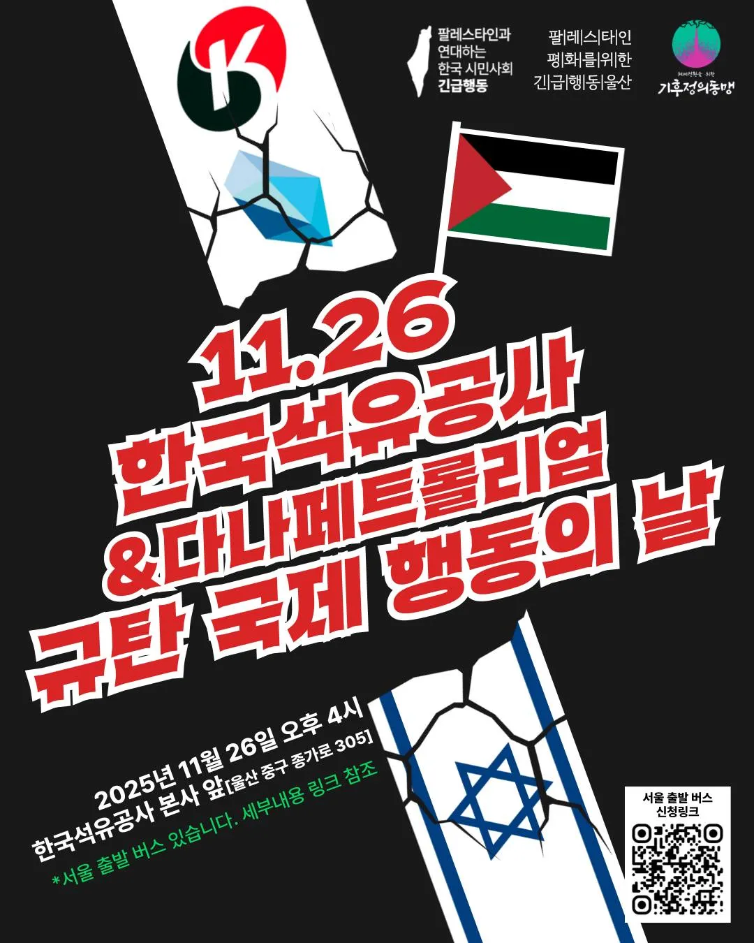 기후위기는 자본의 이익을 위해 산과 들, 갯벌과 바다 온 세상을 채굴하며 오늘날에 도달했습니다. 여기에는 더 풍요로운 자원이 매장된 땅을 빼앗기 위해 침략과 강제점령을 반복해온 제국주의 역사가 중첩됩니다. 공기업인 한국석유공사가 팔레스타인 가자지구 해역의 강탈과 생태파괴에 어떻게 연루되어 있는지, 기후정의운동은 무엇으로 맞설 것인지 함께 고민해봅시다. 많은 참여 부탁드립니다.