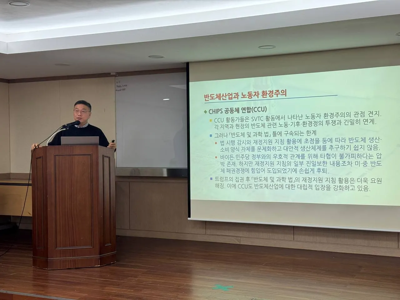 ‘노동자 환경주의와 기후정의 시각에서 본 반도체 산업’ 특강을 시작으로 ’반도체특별법과 클러스터에 맞서는 운동 어떻게 할 것인가’ 토론을 나누고 ’이재명 정부 시기, 공공재생에너지 운동의 확장과 기후정의운동’ 발제와 참여단체 활동 고민과 계획을 나누었습니다.