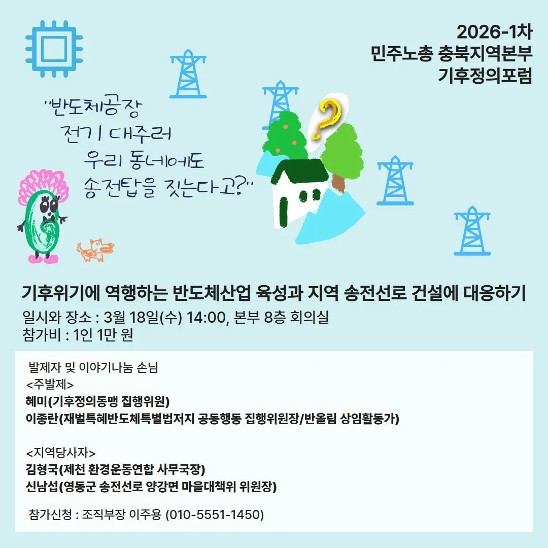기후위기에 역행하는 반도체산업 육성과 지역 송전선로 건설에 대응하기-민주노총 충북지역본부 기후정의포럼
